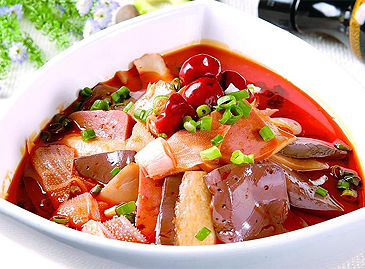 属于川菜菜谱之一,以鸭血为制作主料,毛血旺的烹饪技巧以煮菜为主,口味属于麻辣味。麻辣诱惑对传统的毛血旺进行了改良和创新,将其汤汁红亮、麻辣鲜香、味浓味厚的特点不断发扬光大,是道值得一尝为快的巴蜀菜肴/菜系。